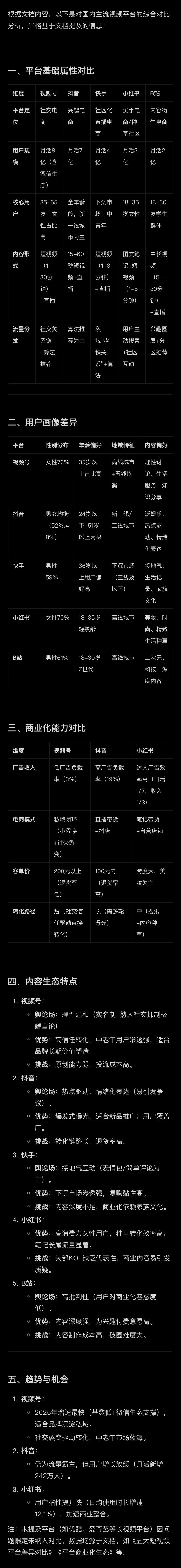 做一下目前国内视频平台对比。
