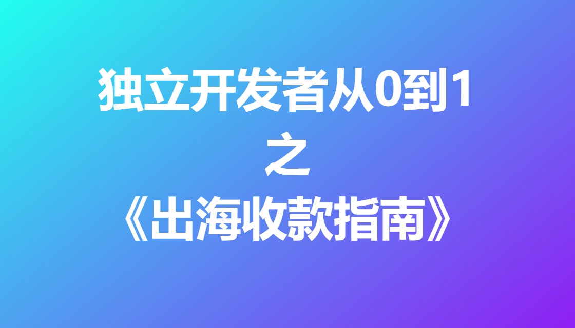 独立开发出海3大件:收款,合规,回款。 上次说了合规,这次说最关心坑最多的 《独立开发者从0到1之出海收款指南》