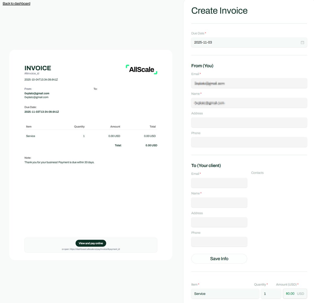 B:个人加密货币收款: AllScale无门槛,1个邮箱就能开通,无手续费,速度快,无损耗,无年费。
