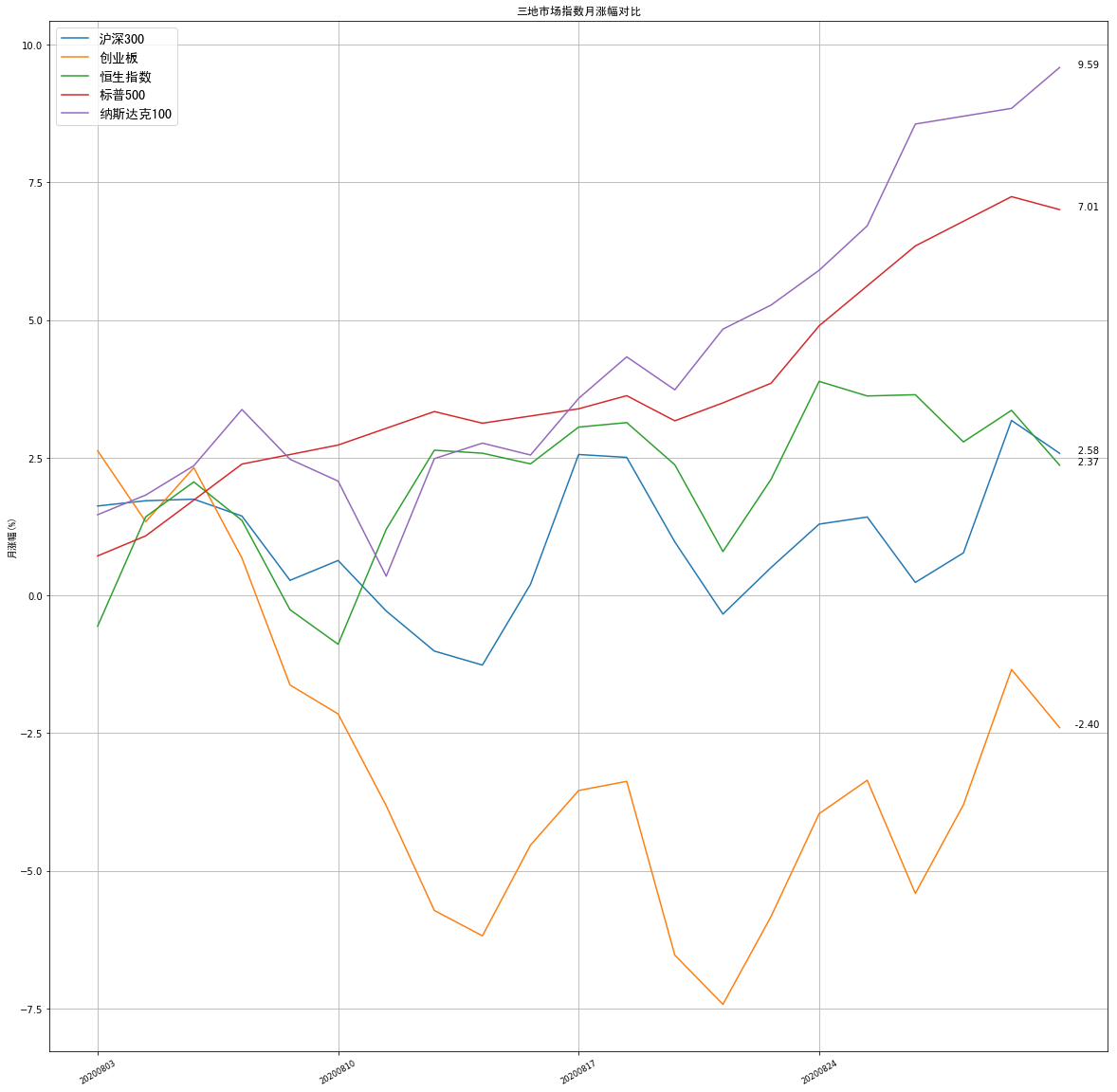 本月A股市场震荡整理,港股小幅上涨,美股持续走牛。