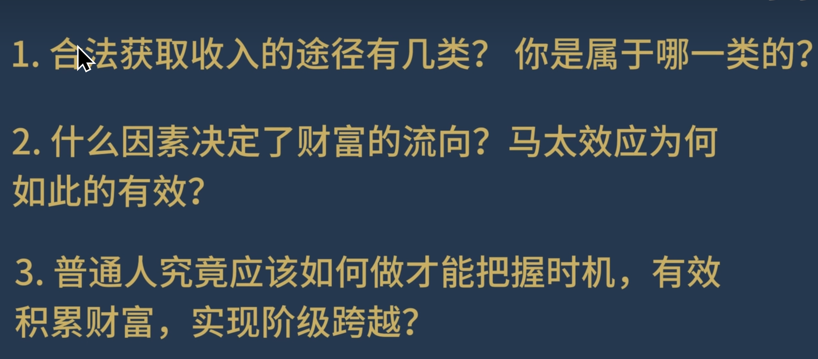 - 财富分配取决于收入模式,而非单纯的努力或时间投入。