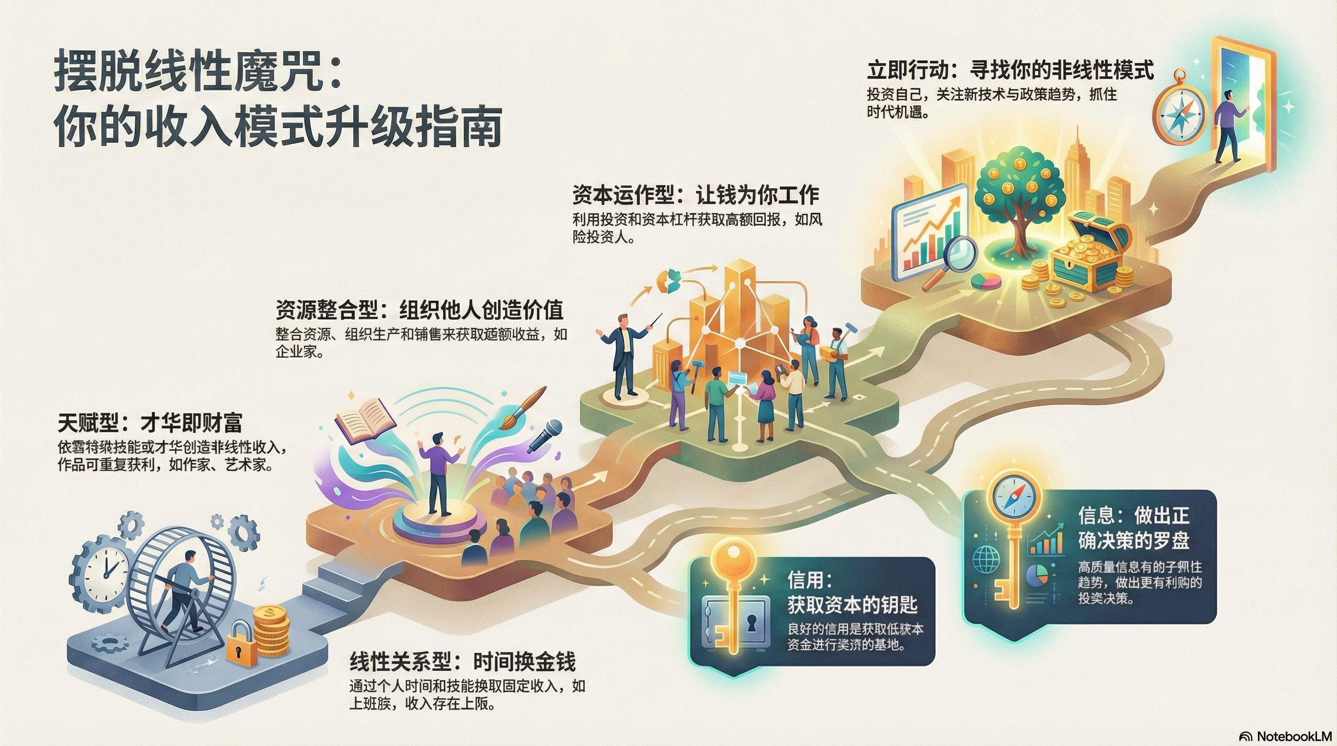 - 收入模式分为四类:线性关系、天赋型、资源整合型和资本运作型。