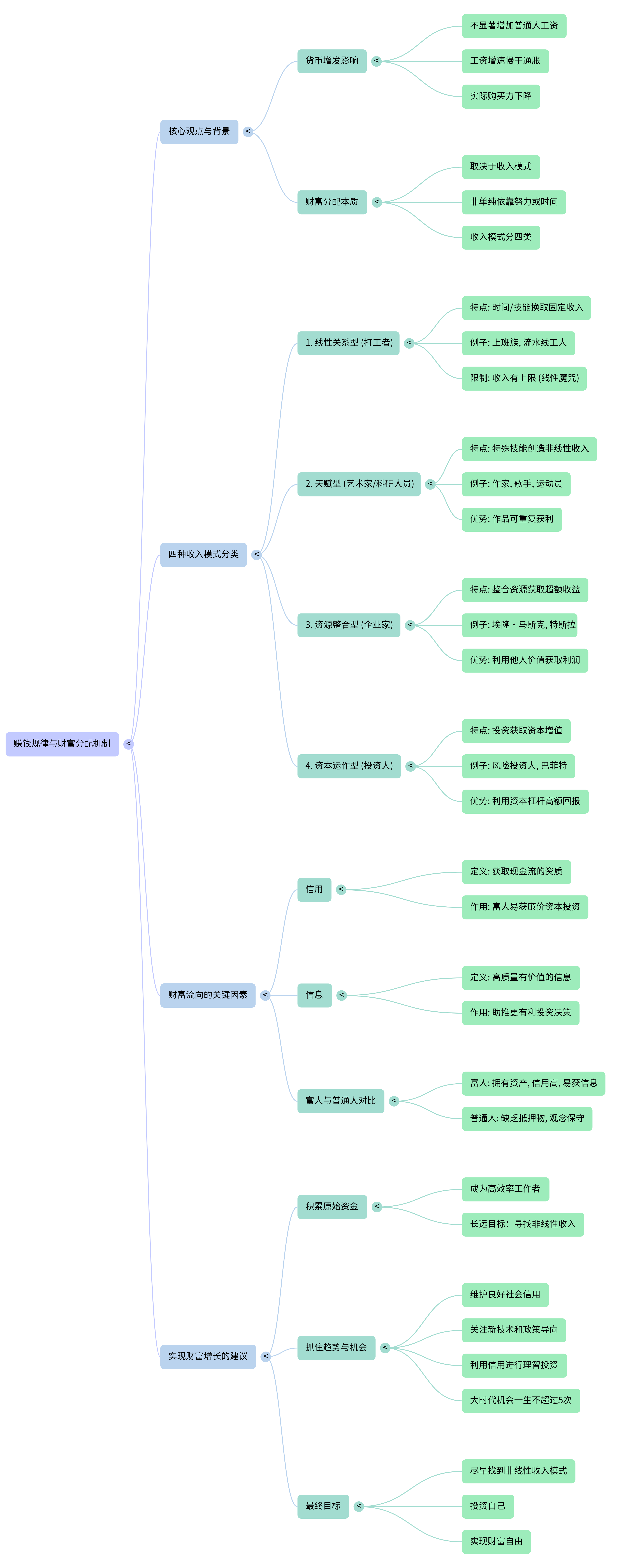 通过上述总结,可以看出作者强调了不同收入模式对财富积累的影响,以及如何通过知识积累、维护信用和社会趋势关注来抓住财富增长的机会。