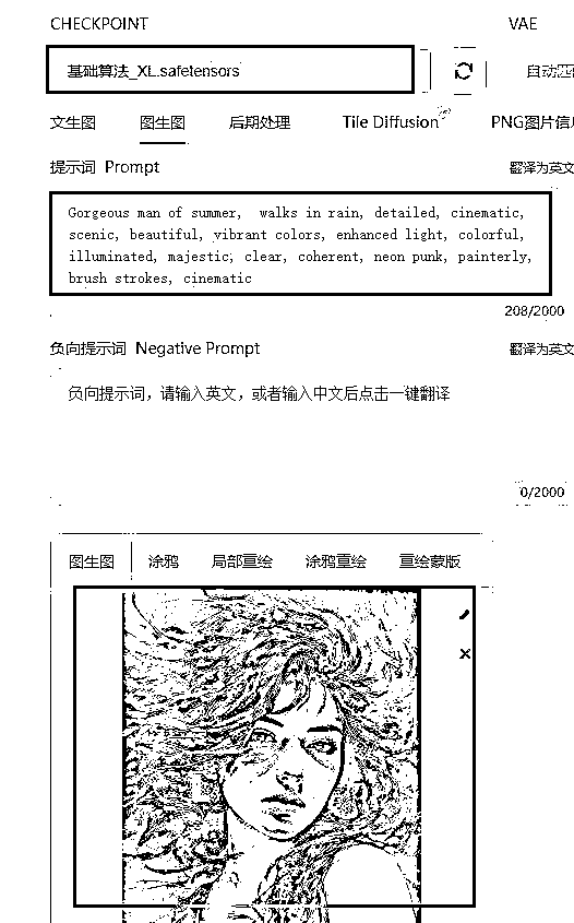 Stable diffuison 的用户操作界面如下图,原页面是纯英文,此处已做汉化: