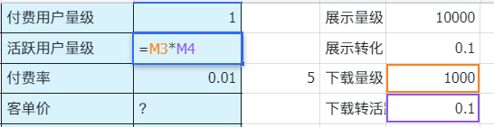 更正确的方案是列出一个动态函数表格,而且指标也要比例子中的更丰富,可能包括营收、付费、流量、下载率、转换率、各类均摊成本等等,互相之间用函数联动。不用担心你定的成本,付费率错误,不断获得更好的信源不断更正就行,当然最好的信源就是MVP上线。