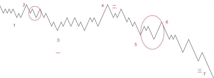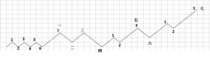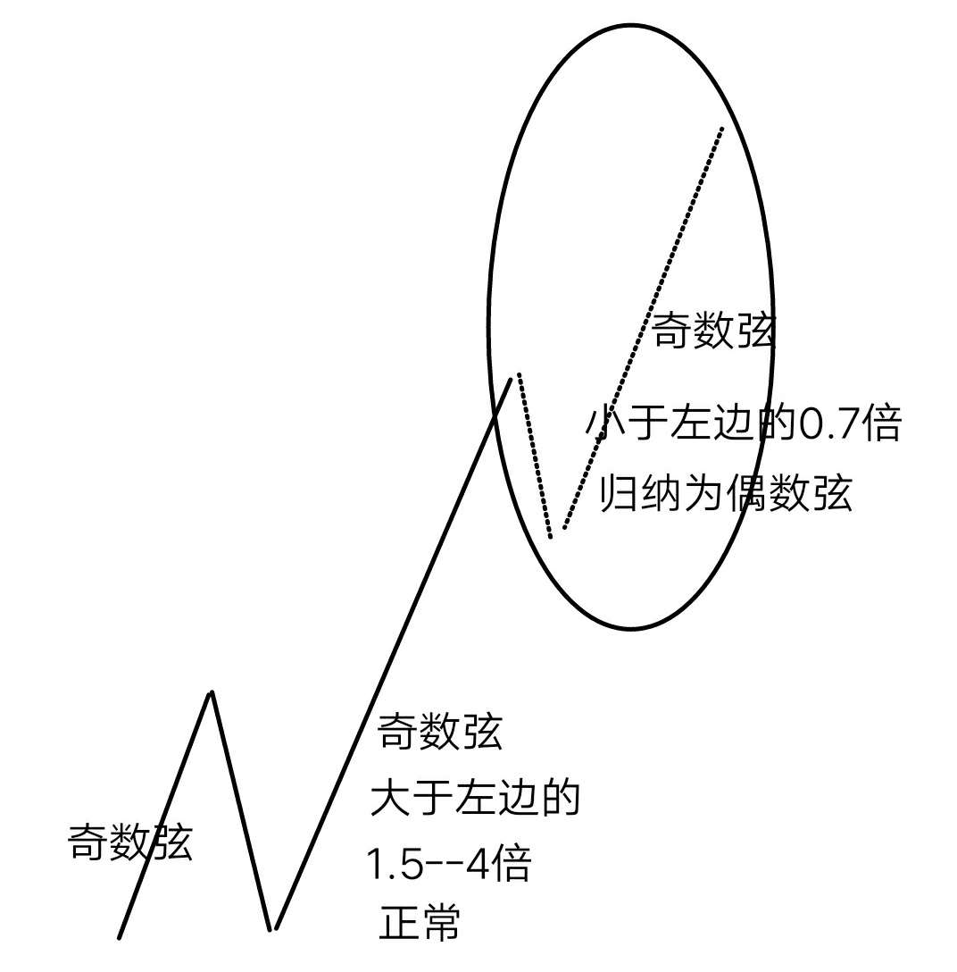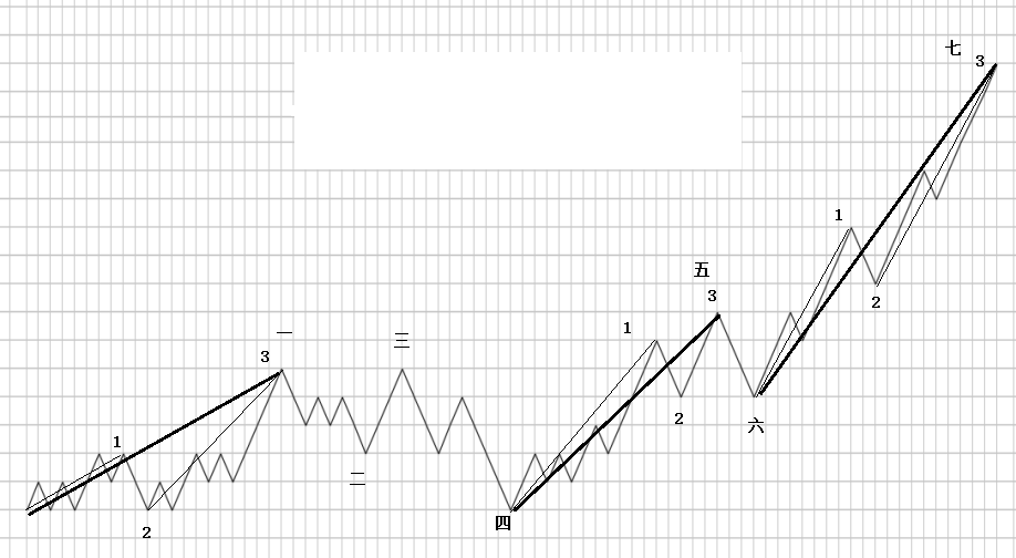 这就是为何本书总是以三生七弦来定义市场形态的根本原因,其本意就是为了简化不必要的低维度的内分形。然而很多股民都存在一个现象,特别关心细节,格局非常小,小到在乎每一分每一秒的涨跌,假如我们把年线看作是三爻,那么季线,月线,周线,日线就是四爻,五爻,六爻,七爻,好了,大家看看七爻波弦分形图里的细节有多么复杂,就知道日线分形的难度有多大,期间包括:粒态定义、波态定义、三生七止定义、平行态定义、倾斜态定义、不三不四形态定义,这些定义混在一起,犬牙交错,足以让你眼花缭乱,如坠云雾。
