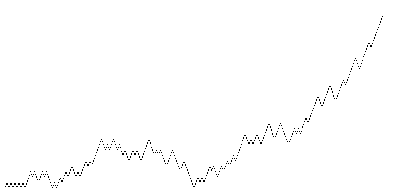 只要大家领悟了波弦分形这个规律,市场就是可以预知的!规律是我们认识事物发展的一个固定的公式,或者说是一个固定的模式。而实际生活中,我们所观察到的事物或所应用的事物并不会在我们已知的分形周期中,事实是见到的或者正在发生的事物总是存在于未知的分形爻度中。也就是说我们身边所发生的事并不是同步的或者同分形爻度的发展,而是此起彼伏的无序的不同分形爻度的不同步的混合发展。好比股市,有的企业上市犹如一粒种子刚刚发芽处在初始,有的企业刚上市但已经处在凋零时期,已经处在镜像的对立周期,没多久就退市破产了!也有的企业上市正好处在乾态,其业绩蒸蒸日上,股价节节攀高 。所以我们不要在市场中想当然的认为任何企业上市第一天都是从第一阶段离态开始的,或第几爻度开始的,这一点一定要理解透彻。因此我们对于个股或指数分析首先要判断出它的分形爻度的自相似性,而非知道准确的分形爻度,这也是无为而治的核心思想。