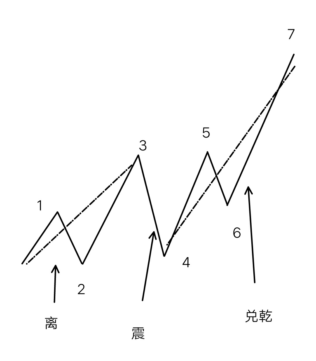 在证券市场上,兑乾态的空间是离态空间的接近四倍。但是在收获这个兑乾态空间时必须要经历震态的下跌,很少有人能在意志上度过这个震态阶段,坚持走向兑乾态的成功!这就是"行百里者半九十"的根本原因所在。