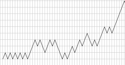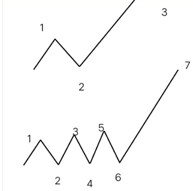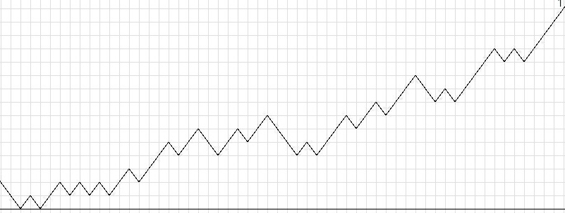 如果我们把向上的线段代表奇数,向下的线段代表偶数,那么任意一个大于1的奇数都包含两个对立数。数"1"和数"2"是对立的,却组成了更大级别数的"3",从而形成了由对立到统一的递进过程。这种对立统一性具有波态性质。如图1-3所示。