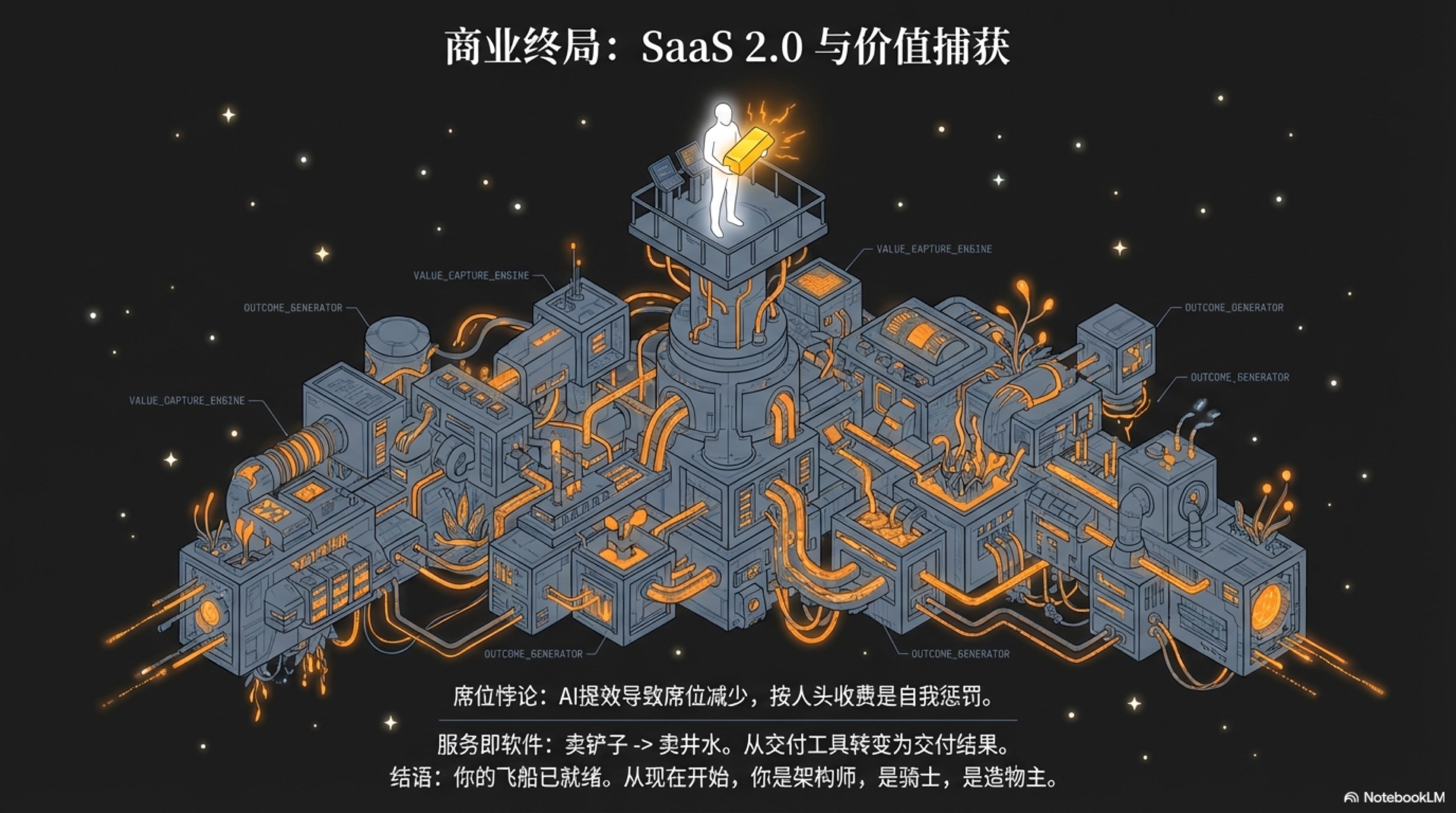 Finally, we solved the most critical business problem: how to refuel this spaceship? We abandoned the old map of "selling software by headcount" because it would self-punish amidst the efficiency gains brought by AI. We drew a brand new nautical chart—"Service-as-a-Software" (SaaS 2.0), aiming to deliver quantifiable business outcomes rather than selling tools. We designed a "Base + Commission" hybrid pricing engine to ensure the spaceship has continuous power when exploring new routes, transforming us from "selling shovels" to "selling well water," capturing our own value by sharing the value created for customers.