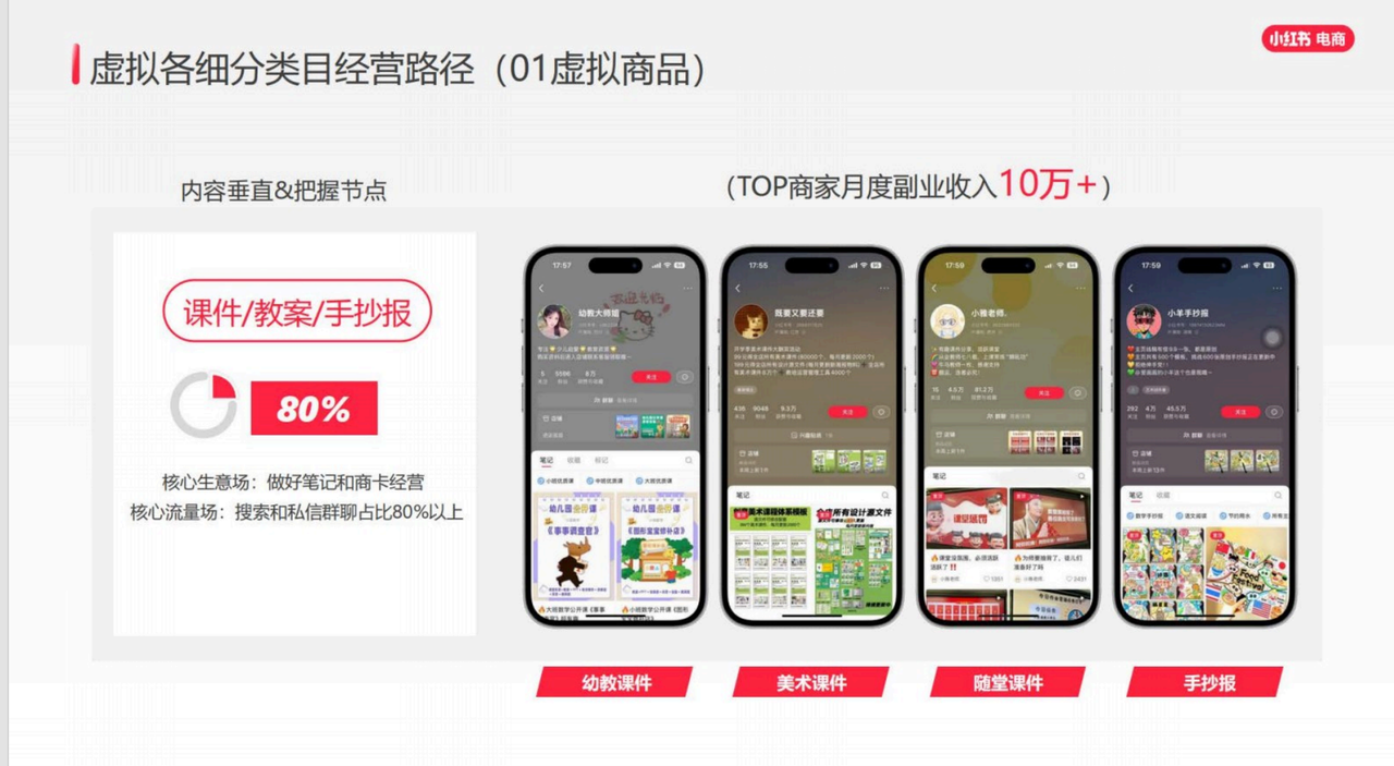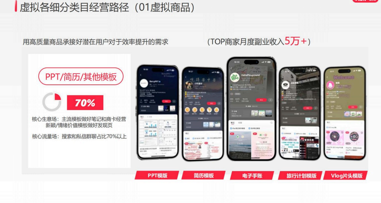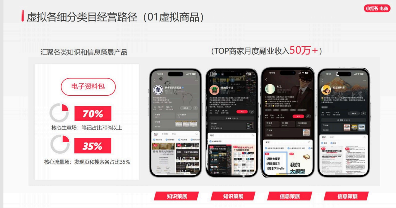 是虚拟行业里最赚钱的类目之一!也是最卷的,哈哈哈。核心打法:笔记+发现页+搜索,多渠道一起推。