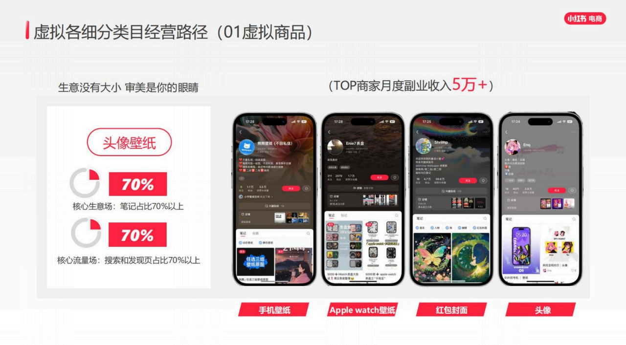 小红书选择“虚拟行业”作为切入点,与其平台【核心 DNA:社区起家】的特性高度相关,内容创作者本身就是虚拟产品的天然生产者。