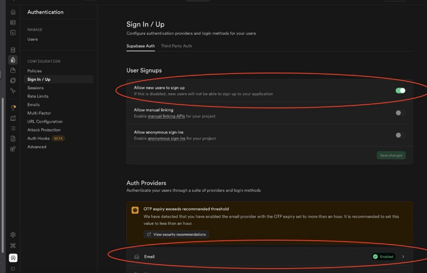 Generally I only open Google account login and GitHub login. You can enable the switch in Supabase as shown in the figure below.