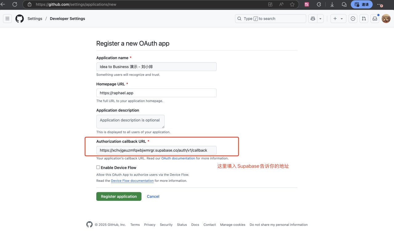 Copy the link in 【Callback URL (for OAuth)】