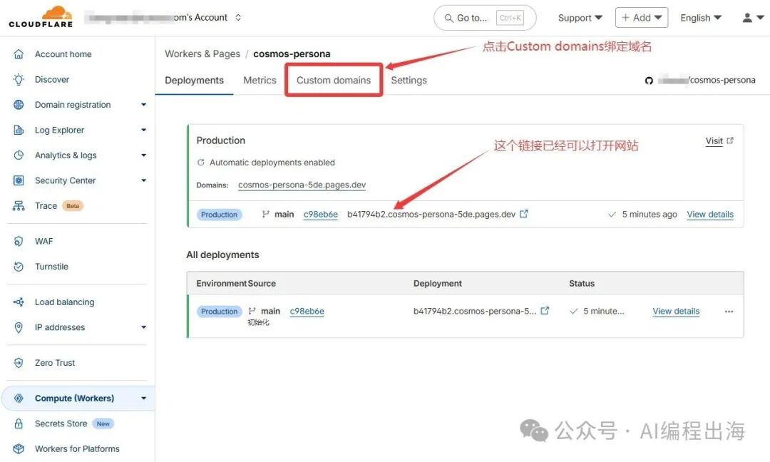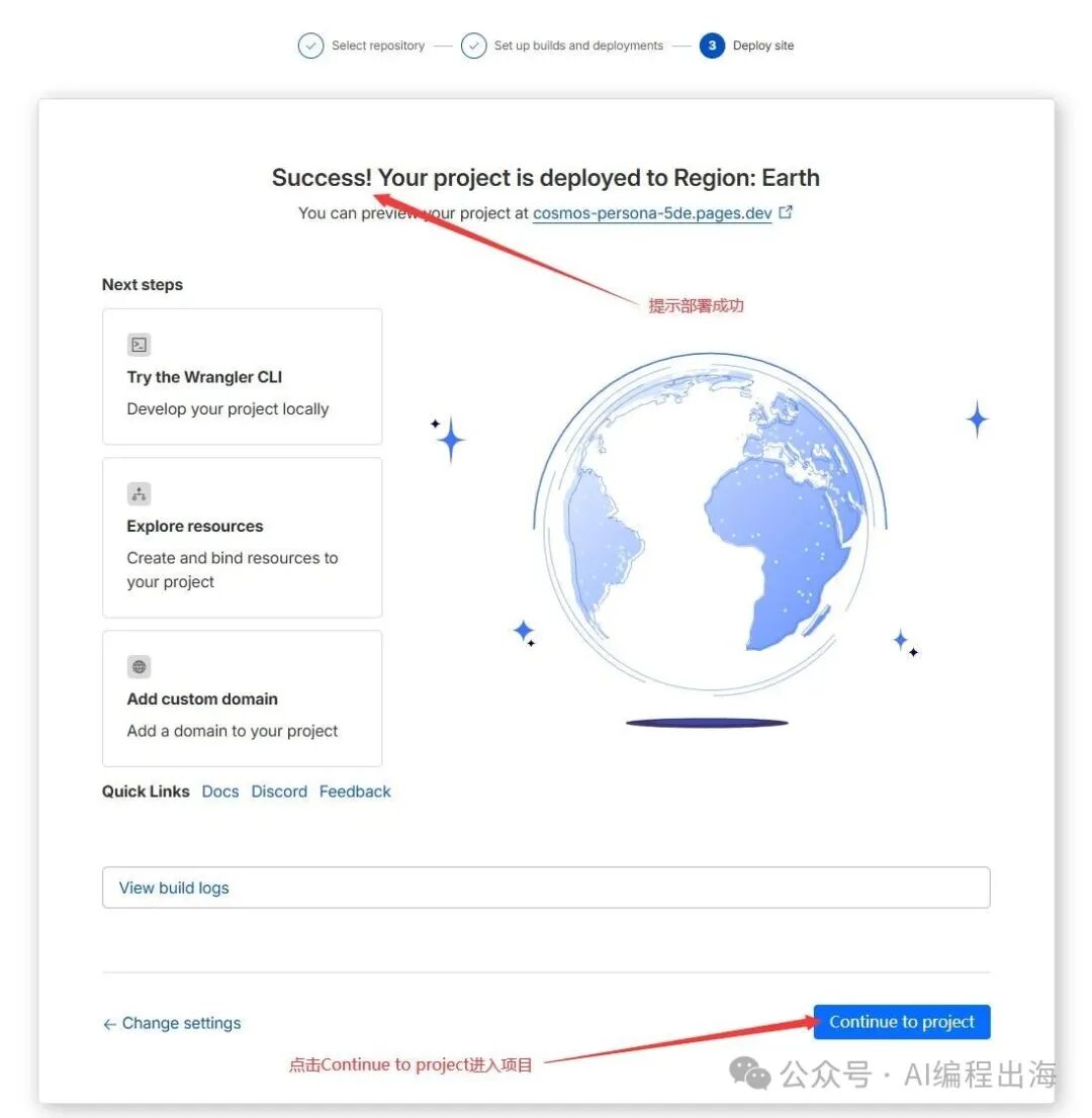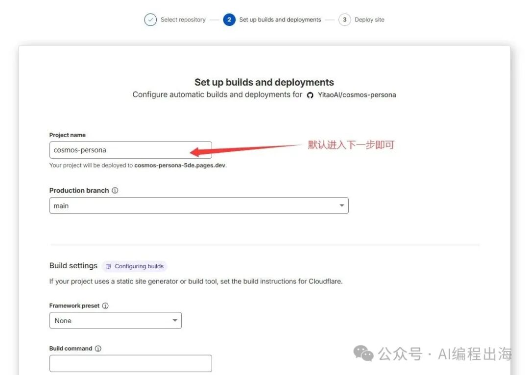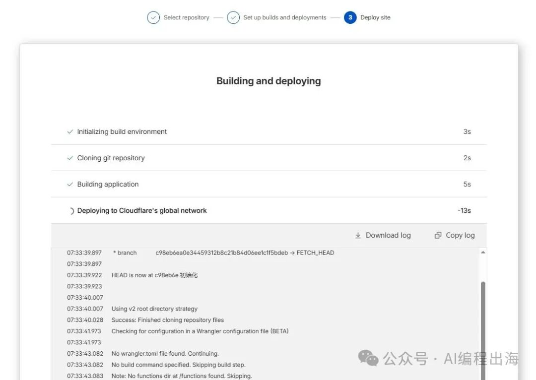 默认进入下一步,然后Cloudflare开始编译部署网站。