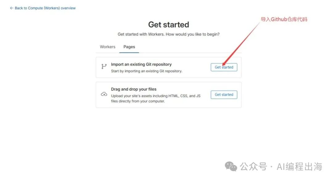 切记点击进入“Pages”页面,然后导入Github仓库的项目。