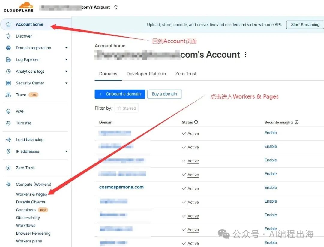 回到Cloudflare账号首页,点击进入“Workers & Pages”。