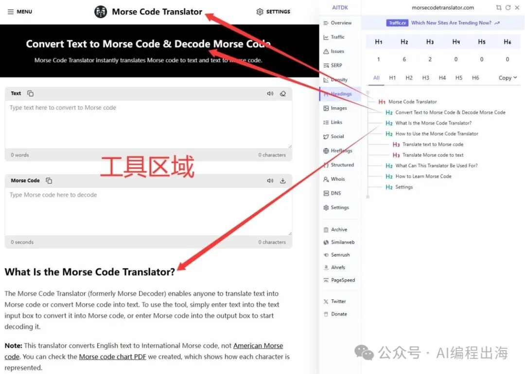 那么,工具站2.0落地页具体有些什么特点呢?我们仍然以Morse Code Translator: