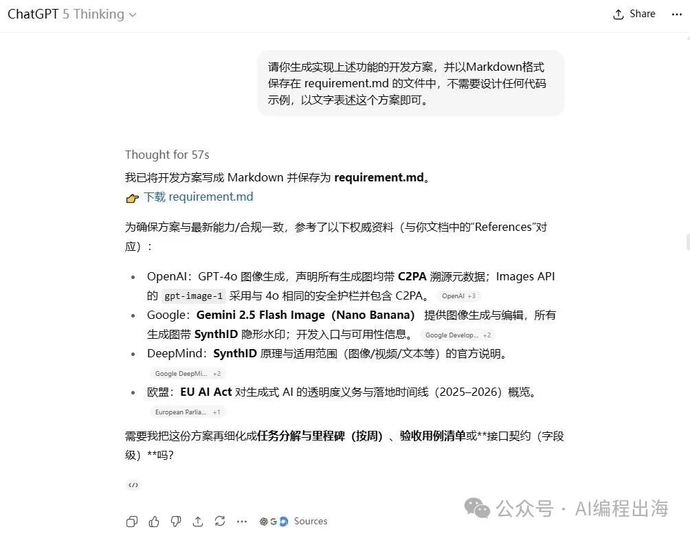 找个一个关键词后,如果你不确定这个关键词的来源和意图,可以先和ChatGPT或Gemini聊一聊。如果你确定要做这个关键词,还可以继续和o3或GPT5 Thinking沟通一下围绕这个词做网站的切入点,并生成实现这个功能的开发方案,以备后续开发这个功能时做参考或使用。
