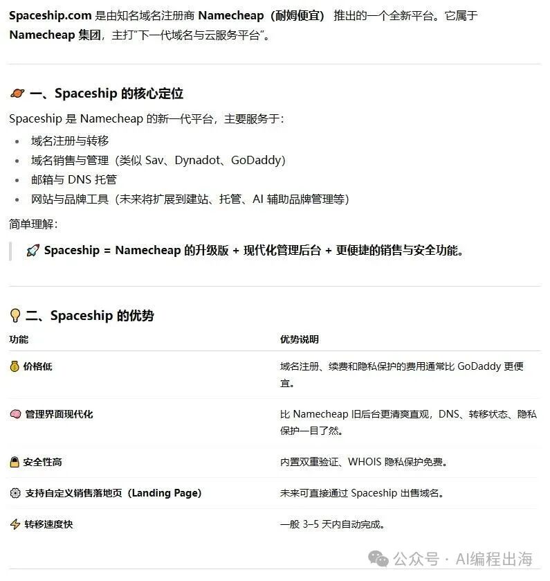 ChatGPT告诉我spaceship是Namecheap旗下的新一代域名平台。最终,spaceship协助我完成了域名所有权的转移,过程中耐心与我沟通,过后还多次通过邮件与我确认,十分专业可靠。