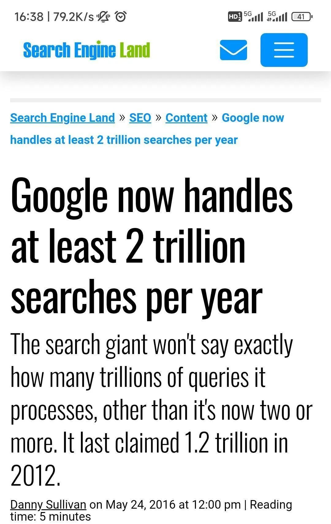 2016年,谷歌说每年处理2万亿次搜索,到2023年,应该要有3万亿次以上了。