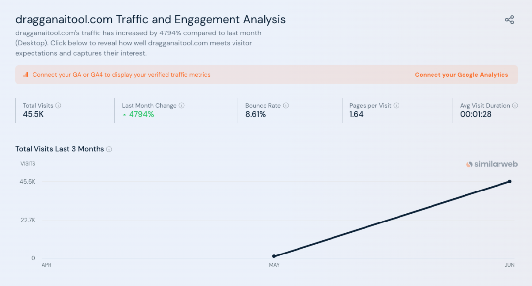 dragganaitool.com 这个域名5月28日注册的,6月份就拿到了4.5万的月访问量。
