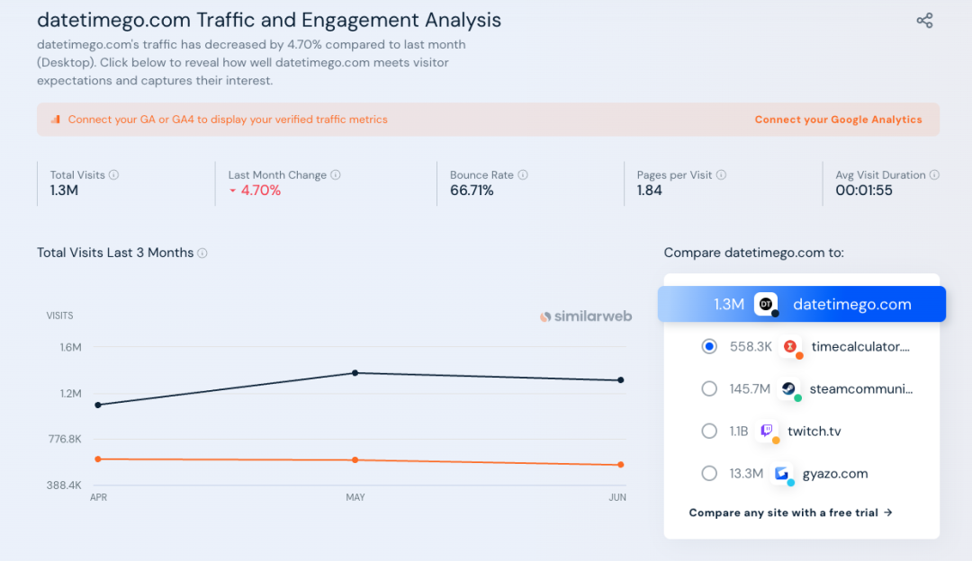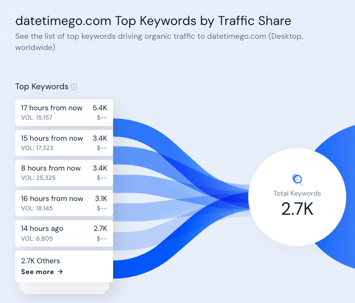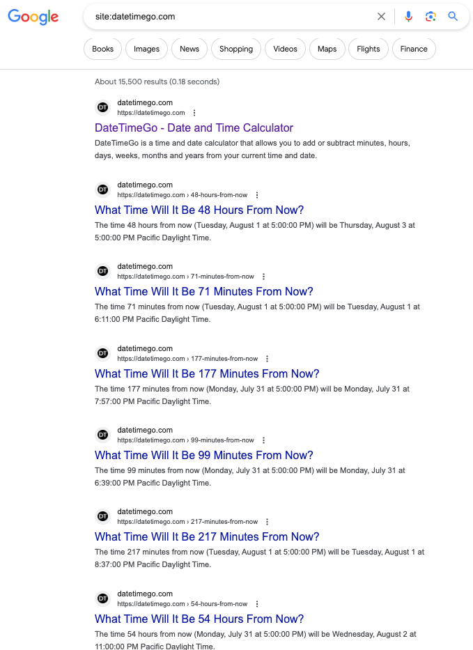 案例1:DateTimeGo.com 2023年6月130万访问量,Google收录1.5万个页面,每月广告费3万美元;