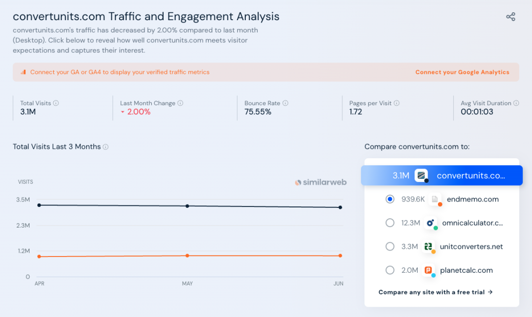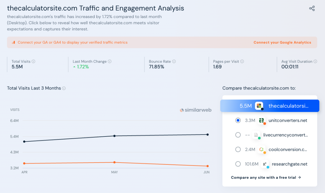 conve rtunits.com 每月310万访问量,thecalculatorsite.com 每月550万访问量。