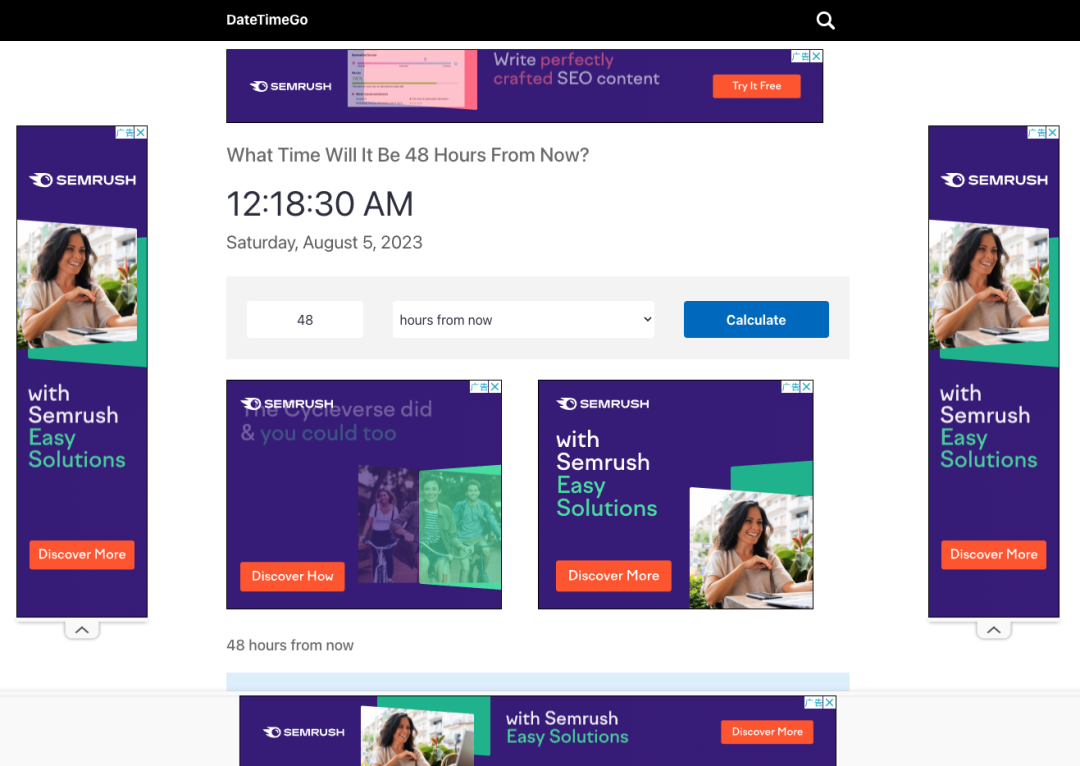 你也可以继续按照我上面讲的方法去分析下这两个站,本文我们回到 DateTimeGo.com ,我们随便打开一个页面,看看有6个广告位,其实哥飞不推荐放这么多广告位,有3个就足够了。