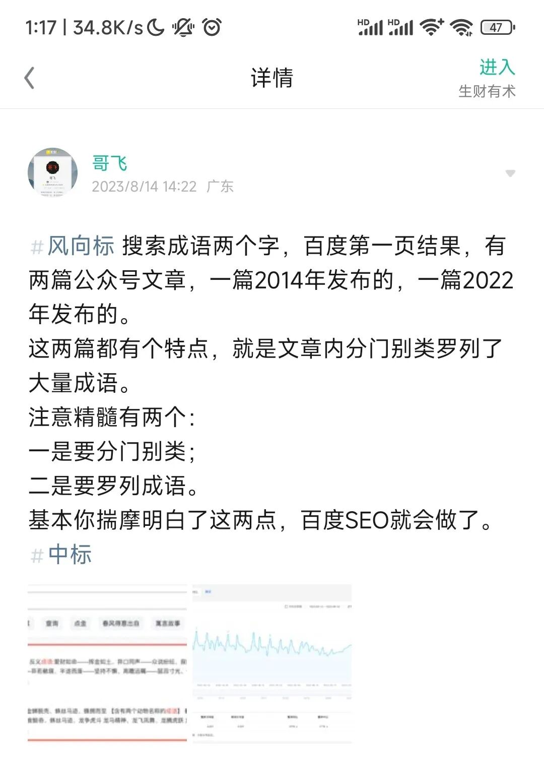 对此,哥飞总结了两点精髓:分门别类、罗列成语,这条发到生财有术风向标了,已中标。