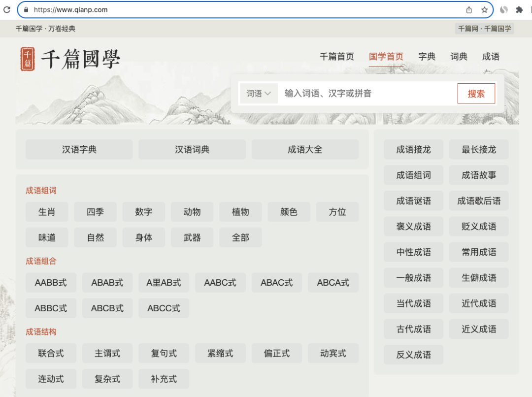 我们以成语子站来分析一下,https://chengyu.qianp.com/ 这个首页整体内容排版布局,就很符合哥飞之前在付费社群讲过的思路。