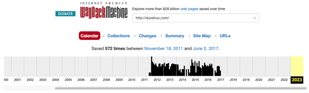 我们主要看时间轴,可以看到这个网站最早是2011年开始收录的,然后到2017年中之后就没有收录了。