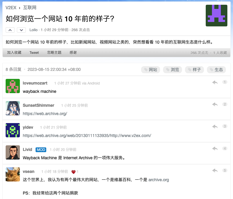 archive 的基础用法就是这些了,你可以放进任何网页地址进去体验一下时光机。甚至被删掉的网页,说不定也可以在这里看到。