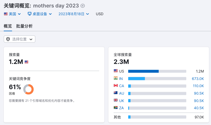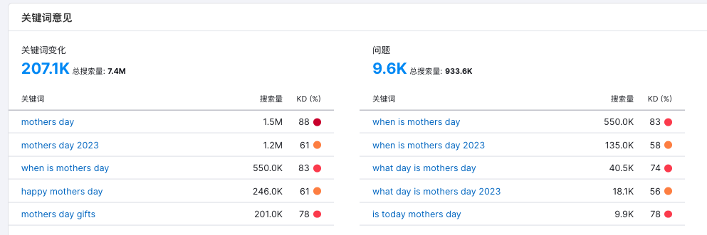 不过2023年的母亲节已经过去了,我们可以提前布局2024年关键词。