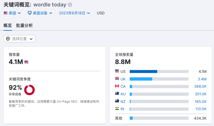 需求是有的,全球有460万搜索量,不过竞争度88%,刚才说了,有一定难度。