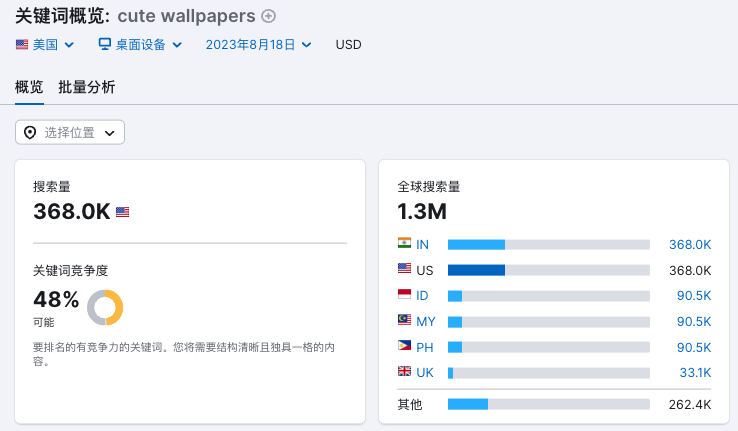 相关关键词还可以挖一下,如 cool wallpapers 等,还有挺多。