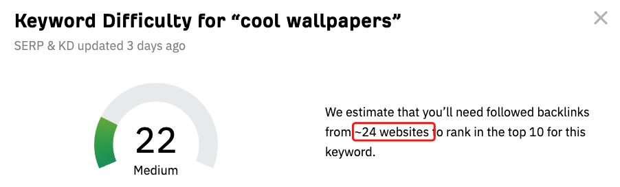 但是,别急,我们增加年份 2023 ,可以看到难度骤降,只需要24个优质外链网站就可以。