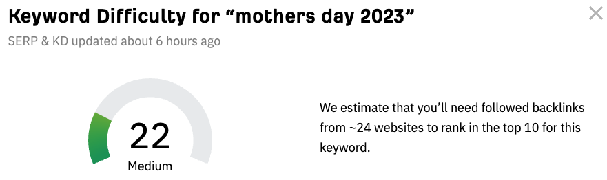 这个词本身还是有一定难度的,但是好在每年都会有新词,如 mothers day 2023 ,mothers day 2024 等等。