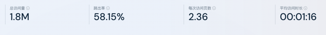 这里哥飞给大家介绍一下similarweb访问量的定义,同一个用户,只要某一次的访问离前一次访问大于30分钟,那么访问量就有加一。