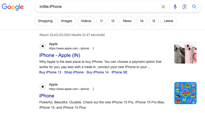 举例,搜索 “ intitle:iPhone ” 结果如下: