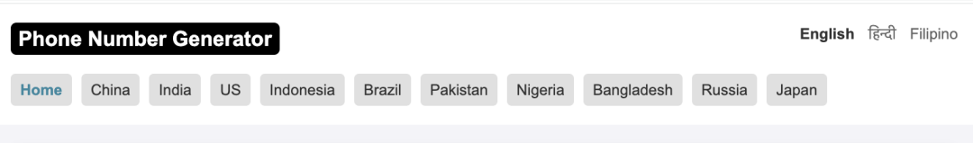 接着去修改 china-phone-number-generator.html 文件,依然是把语言切换放进去,跟首页有些小区别的是,因为用户当前在中国手机号页面,所以切换时也需要保持继续在这个页面,对应的代码如下: