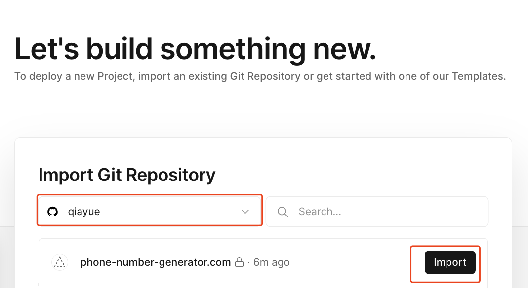 Github 仓库中有代码后,就可以部署到Vercel 中了。