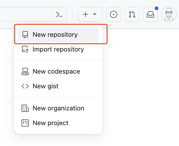 打开 Github ,在右上角点击“+”号,选择新建一个仓库。