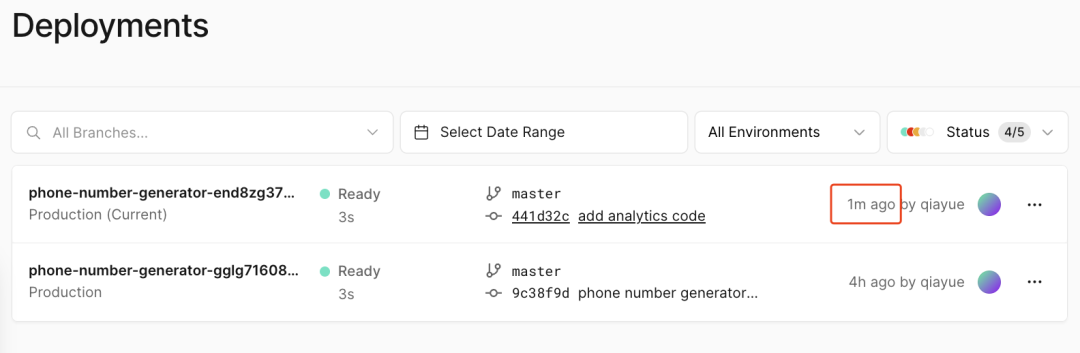 此时如果你打开 Vercel 就会发现,我们提交最新代码到 Github 之后,Vercel 就重新部署了新版网页。