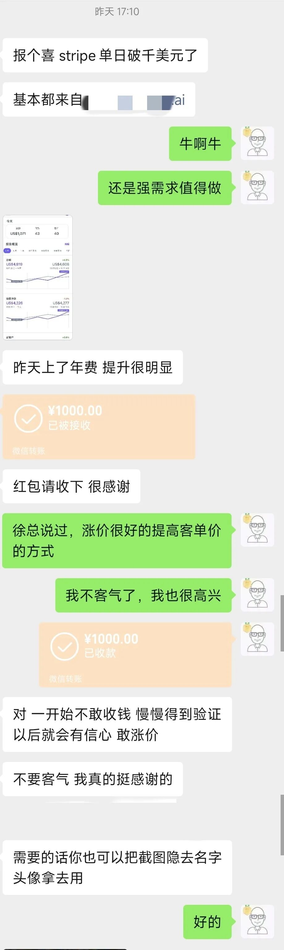 如另一位群友死磕用户付费,目前日收入已经超过1000美元了: