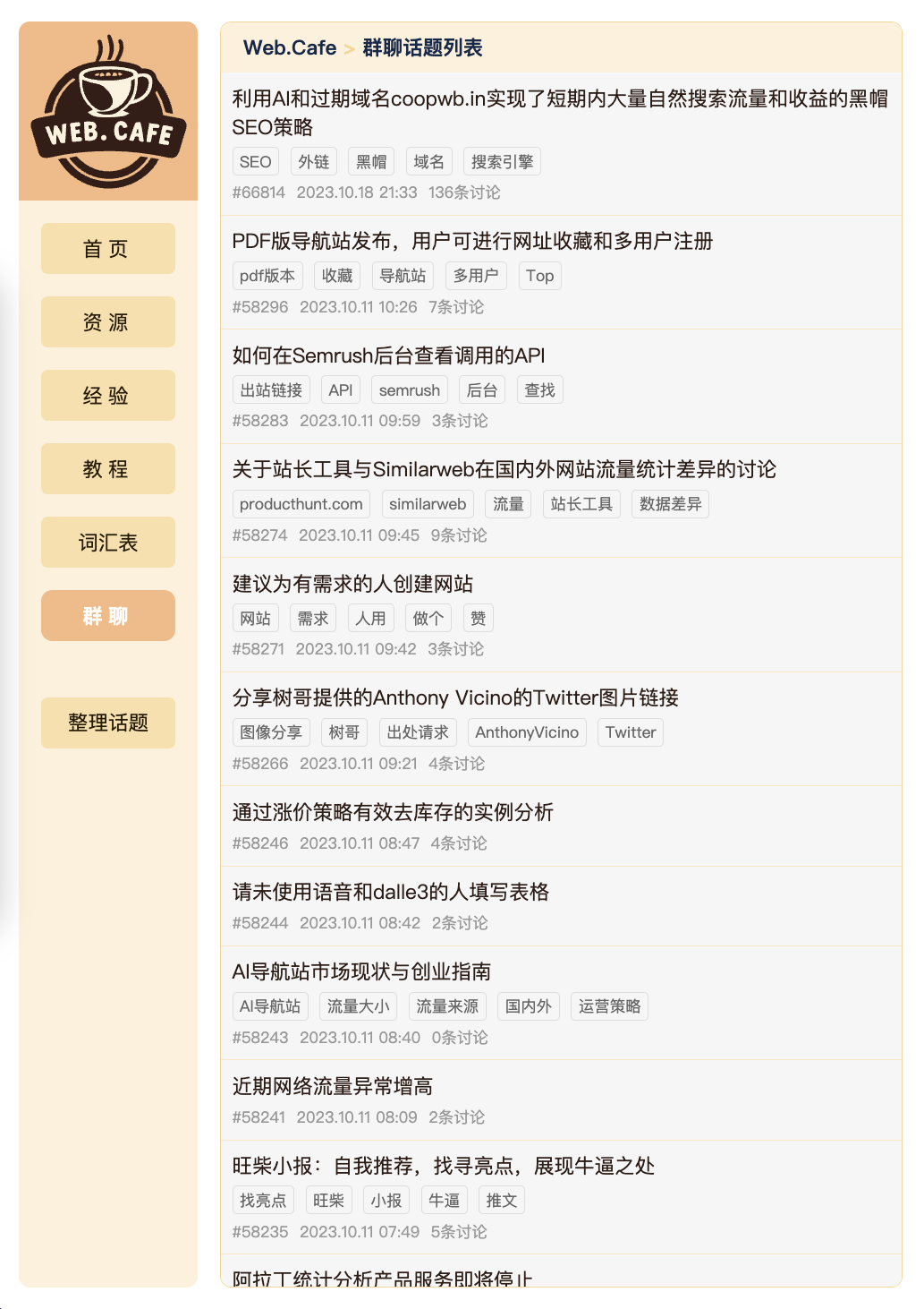 社群讨论的话题主要是围绕着网站来的,用网站来承接流量,然后变现。
