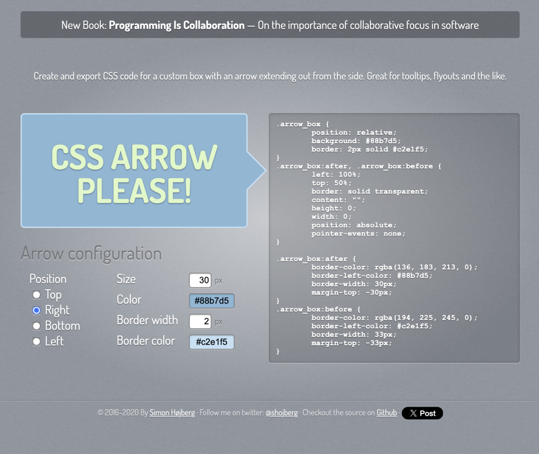 这是一个帮你生成箭头 css 代码的在线小工具, 访问量不大,每个月小于5000。