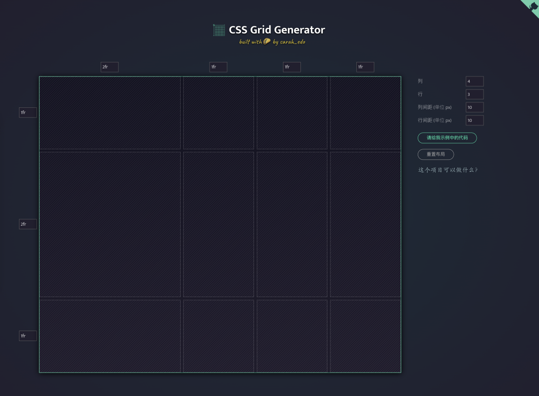 这个小工具只做一件事情,生成 css grid 代码,高的时候有50万月访问量,谷歌搜索这个关键词排名第一。