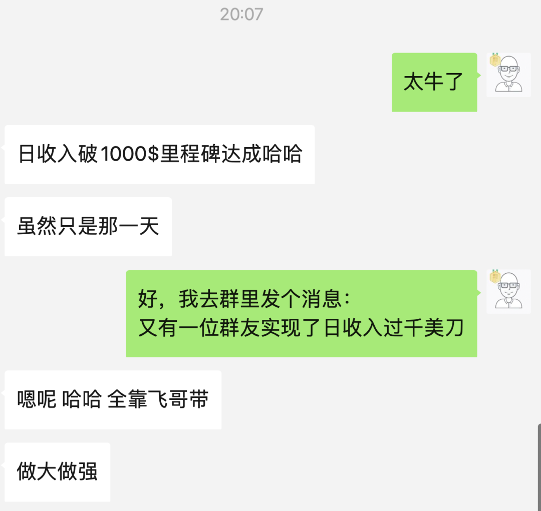 分享策略之前,先给大家看个好消息,又有社群里的朋友加入日入千刀俱乐部了,虽然只是其中一天破千了(不代表其他天都是零哈,只是不到千刀)。