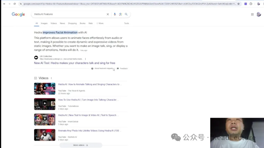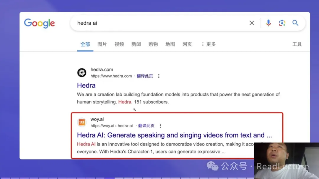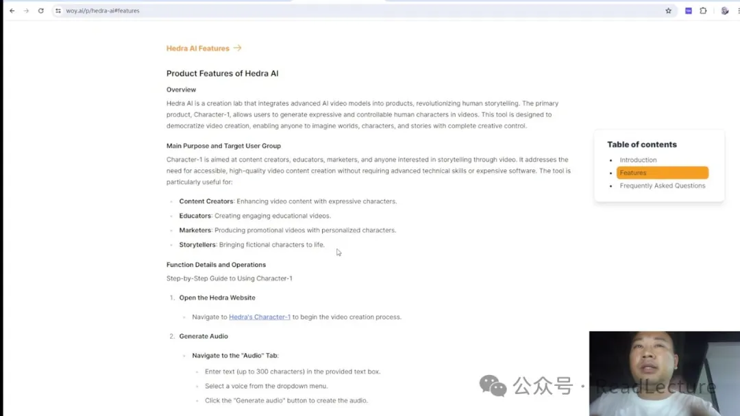例如,当有人搜索Hedra Al的Features时,我便生成了一个相关页面。现在,我们可以直接进行搜索。
